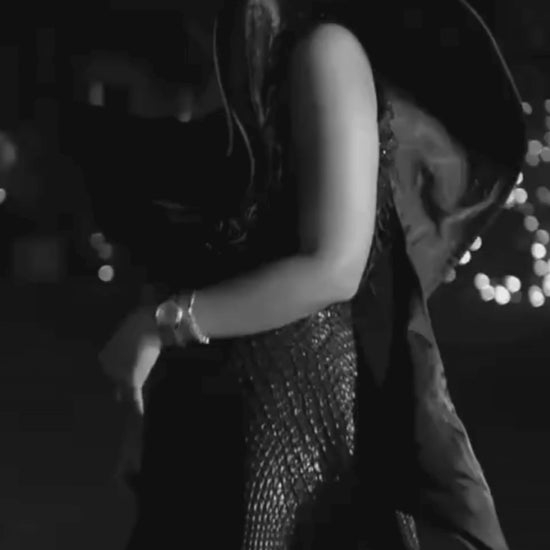 Each piece is meticulously tailored to maintain its architectural shape while ensuring comfortable wear, making it as flattering as it is striking. Whether photographed under lights or admired up close, the gown reflects a subtle celestial shimmer that stays true to its name-an alluring blend of starlit grace and sophisticated drama.